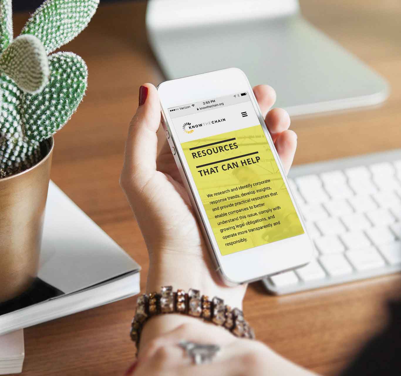 Humanity United: Smart web design that inspires social action Learn more How do you tell a powerful story through design to drive social action? Comrade established a new brand identity, website, and marketing collateral for KnowTheChain, Humanity United's initiative to help end forced labor in supply chains. Our work created a real impact and developed an approachable brand that tells a powerful story. We delivered a new website, resources, and reports organized to help drive action. The website design won the Best in Class Interactive Media Award and Communication Arts Web Pick of the Day. The complexity of forced labor The first problem was the complexity of the issue we needed to convey. We wanted to create an intersection of non-profit and consulting work that presented clear, actionable information to help global companies address their forced labor abuses. We also needed to create new brand identity that tackles the dark subject matter of human trafficking in a relatively upbeat, action-oriented way. Telling a powerful story In a series of workshops, we fleshed out KnowTheChain's real objectives to create a single clear statement to guide us. The result? Transparency. We brought KnowTheChain's goal of achieving transparency in supply chains to life through colors and image treatments, making it a central part of the design system. We created smart content, copy and interactions to make a modern presentation of the content and present key information concisely. We decided to use people-focused images to put the human element of supply chains at the front and center. The design and copy tell a single, powerful story to drive action. Inspiring change The KnowTheChain website is now a truly interactive and engaging resource for companies to learn about and address issues of forced labor in their supply chains. We transformed KnowTheChain from a small initiative focused on a single policy in California into a larger, globally focused one, with a design that promotes the mission.