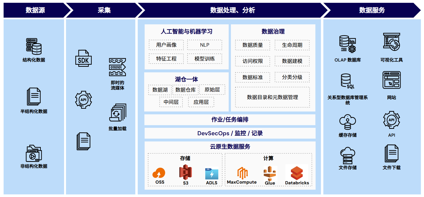 Datahub大数据解决方案 企业级大数据基础平台 联系我们 CI&T Datahub 大数据解决方案 CI&T基于多年为世界级企业开发全球数据平台的经验打造的数据平台框架,旨在让我们的客户根据业务需求,以有限的投入,构建出企业自有的、成熟的数据平台。Data Hub强调开发治理一体化,高度整合云原生数据服务,并提供数据集成、数据开发、数据标准建模、数据质量、数据资产、指标体系等全方位数据能力,帮助企业完善数据规范、提高数据管理效率、提升数据质量。 该解决方案的特点: 一站式开发治理平台 将数据集成、开发和治理整合到一个统一平台中,减少了跨应用平台操作的复杂性 湖仓一体 支持结构化、半结构化及非结构化数据格式解决企业数据孤岛问题,将各系统的数据进行统一的管理 灵活性与可定制化 按照企业需要灵活的部署相关组件支持集成开发客户扩展定制化需求 产品概览 部分使用场景 方案优势 高度可定制化 基于标准化、灵活、高可扩展的架构原则,使企业大数据平台更具有成长性,更好的支持企业长期的定制化需求。 效率共享 通过统一调用标准封装基础业务能力,以及模块化的运算配置和数据模型的复用,提高研发效率。 私有化部署 敏捷、协作、透明的合作方式。提供客户私有化环境部署,对客户开放所有源代码 相关案例 2020年12月07日 雀巢巴西应用数据和智能来影响消费者体验 更多 2019年9月24日 通过全方位渠道报告和智能补货提高效率 更多 2019年9月24日 一家美国大众传媒公司:数据管理的转变 更多 联系我们了解更多关于数据的案例